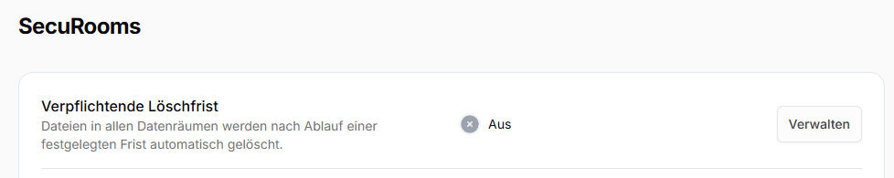 📋 SecuRooms: Verpflichtende Löschfrist für Datenräume einrichten und verwalten